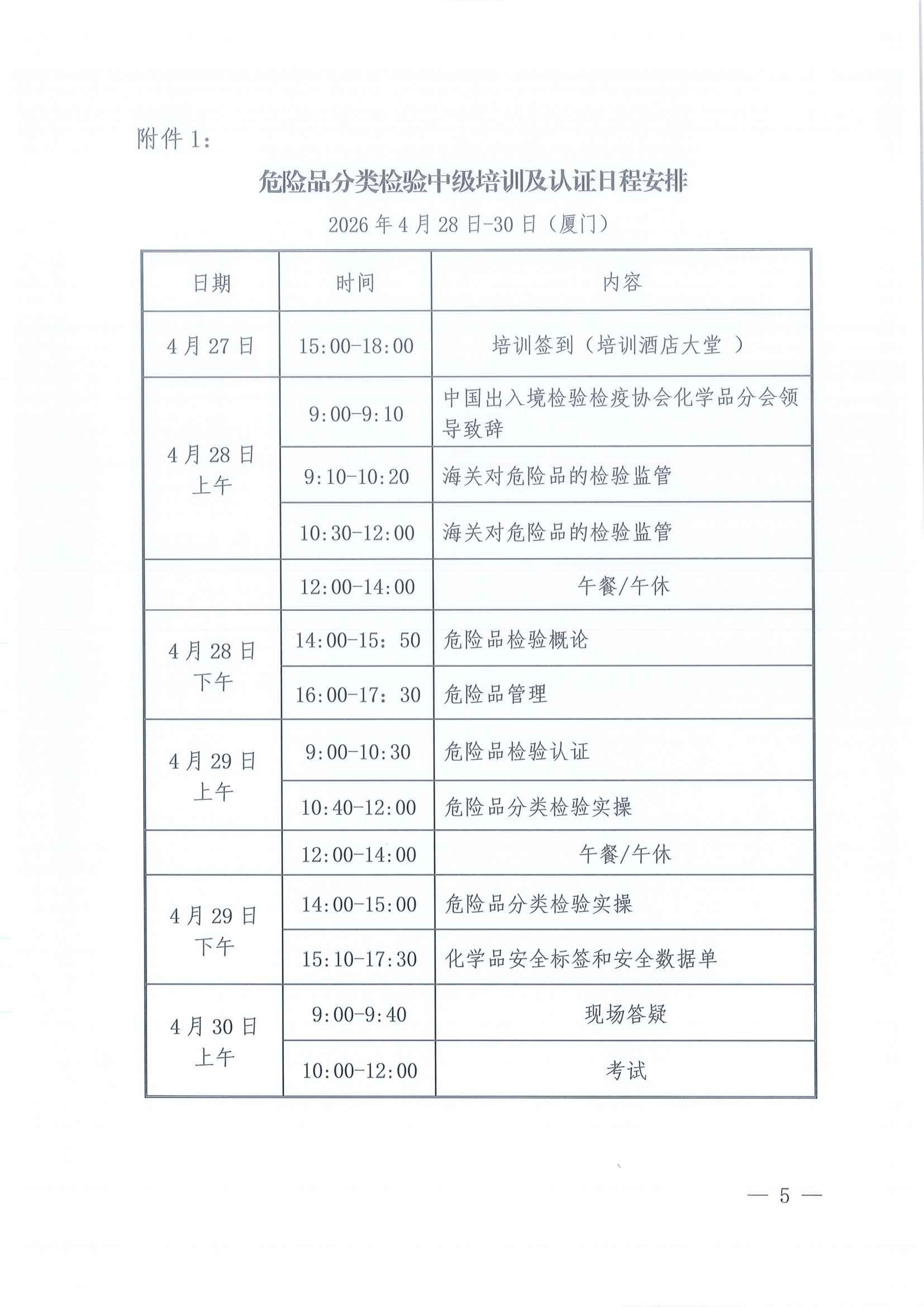 您现在的位置是:首页 > 工作动态与通知公告 关于举办危险品分类检验中级检验师培训及认证的通知 发布日期:2026-04-13 字体: 【小】 【中】 【大】 分享: 热门文章: 张琳秘书长会见ISO/TC 309组织治理技术委员会主席Kev Brea先生[2026-03-19] 接棒启新航 聚力向未来 | 中国出入境检验检疫协会第六届第一次会员代表大会[2026-01-28] 检测和校准实验室认可技术培训班在西安成功举办[2025-12-16] 重磅!中国出入境检验检疫协会国际贸易便利化分会正式成立[2025-11-22] 第七届国际检博会圆满举办:链动全产业链,共启检验检测新生态[2025-11-17] 海关资讯 从 2026 年全国两会看中国外贸发展 前两月我国货物贸易进出口增长18.3% 对共建“一带一路”国家进出口增长两成 筑开放新高地 促国内国际双循环——访全国政协委员胡伟 两会好声音 海关总署公告2026年第22号(关于进口乌拉圭碧根果检验检疫和卫生要求的公告) 海关总署公告2026年第16号(关于进口加拿大宠物食品检疫和卫生要求的公告) 海关总署公告2026年第14号(关于进口韩国野生水产品检验和卫生要求的公告) 2025年港珠澳大桥口岸进出口货值超3000亿元